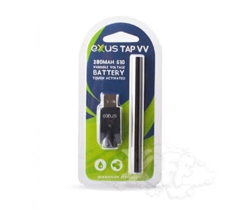 The Exxus Tap VV 280 mAh 510 Touch Activated Battery by Exxus Vape is thoughtfully designed to be simple and unimposing. This fact about its appearance makes it an ideal match for a variety of tanks. The voltage of this battery is adjustable, this fact is what makes it a variable voltage device. The output power can be changed from anywhere between 3.3V and 4.2V. With a 510 thread attachment component, the Exxus Tap can fit a large collection of tanks on the market.