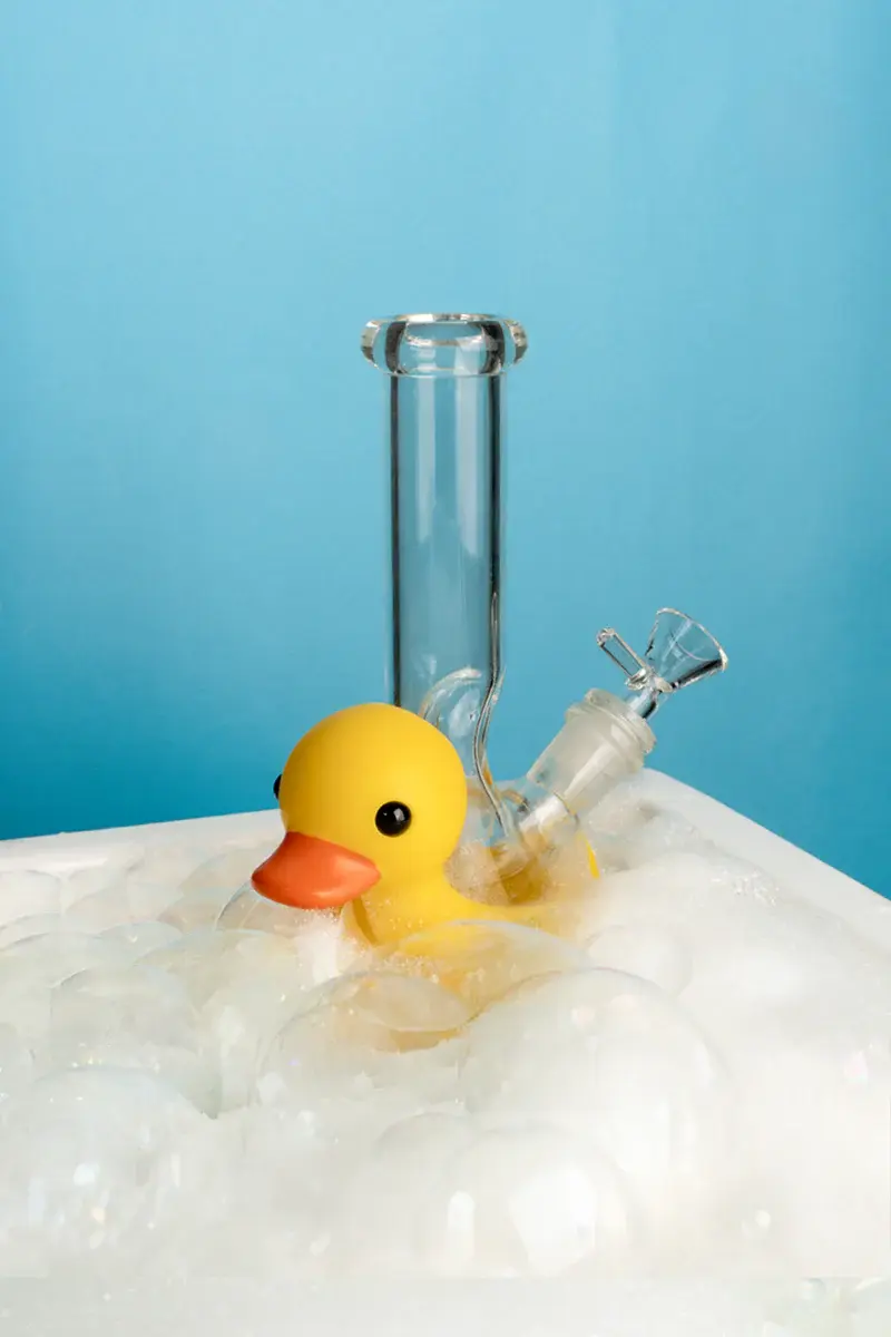 Relax in the tub with the 8” Rubber Ducky Water Pipe by LIT® Silicone. Made from PVC with a glass core, this little fella is ready to keep you floating on the perfect high.